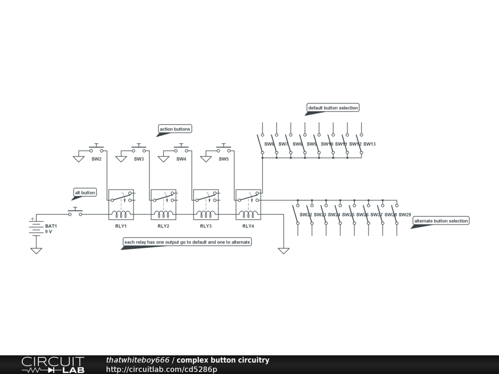 a more in depth look at the full layout minus the junction box for three of the four buttons