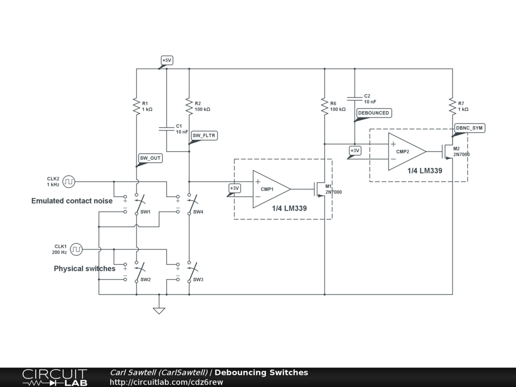A demonstration of how to debounce a switch with an RC and a comparator.