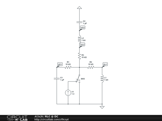 This circuit show the steady-state of RL, RC and RLC at power on and off.
