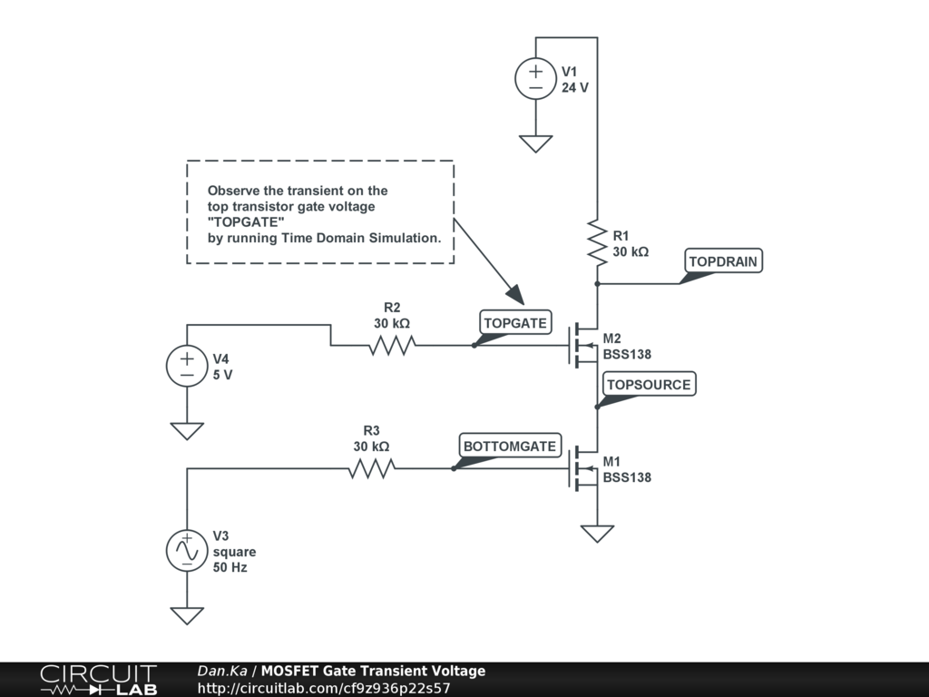 Simulation of simple "AND" logic using two n-MOSFET.