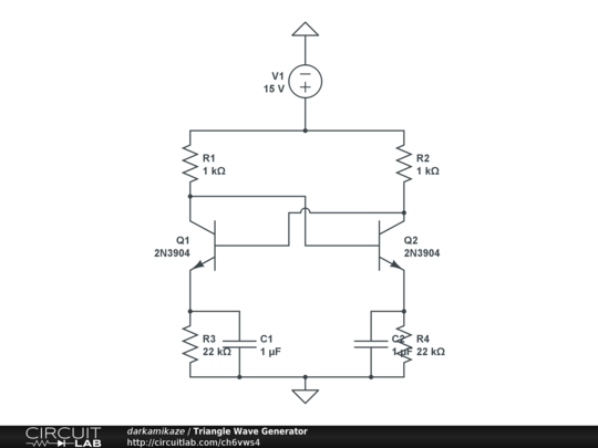 Simple triangle waveform generator I will be using in a fully discrete class d amplifier I'm going to build.