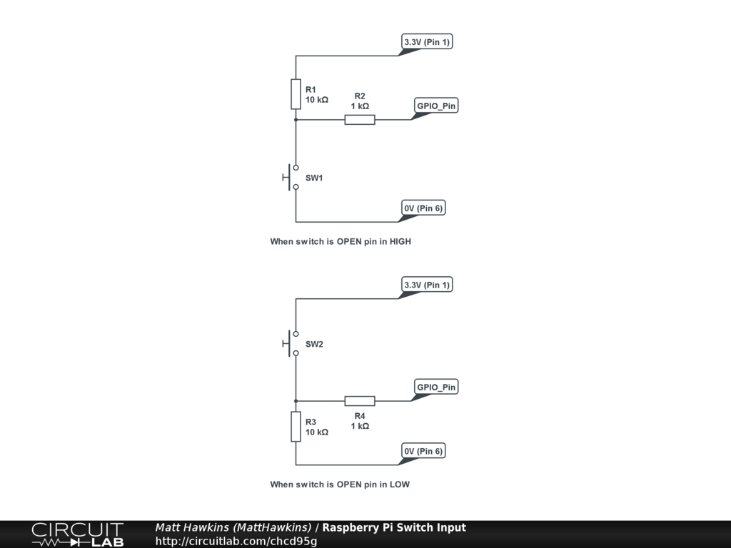 This circuit shows how to use a switch to toggle a GPIO pin configured as an input.