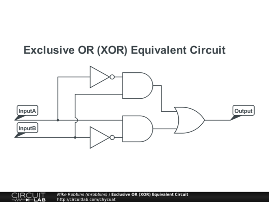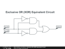 XOR gate depicted in sum-of-products representation (composed from OR, AND, NOT gates).