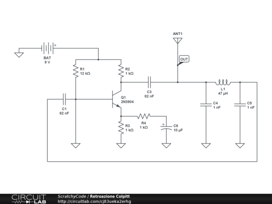 Amplificatore con retroazione in configurazione Colpitt.