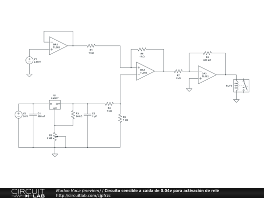 El presente circuito es usado para acondicionar la señal de un sensor de presión, en el cual se caracteriza por activar un relé en caso de una fuga o caida de presión