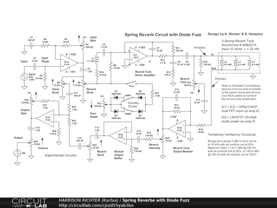 Spring Reverb Circuit with Diode Fuzz for Guitar