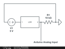 Distance sensor using a photoresistor. I used LDR VT90N2 |