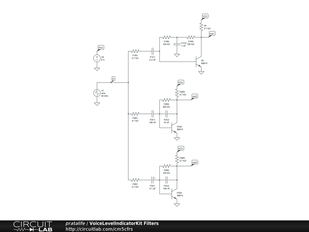 Analysis of the 3 band audio filters in a "Voice Level Indicator" kit
