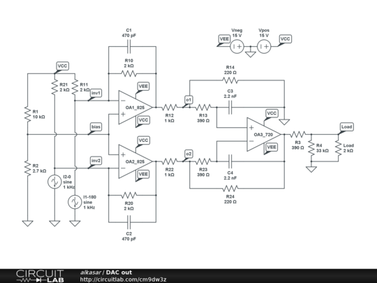 I1 and I2 current source simulate the AD1955 dac analog output.