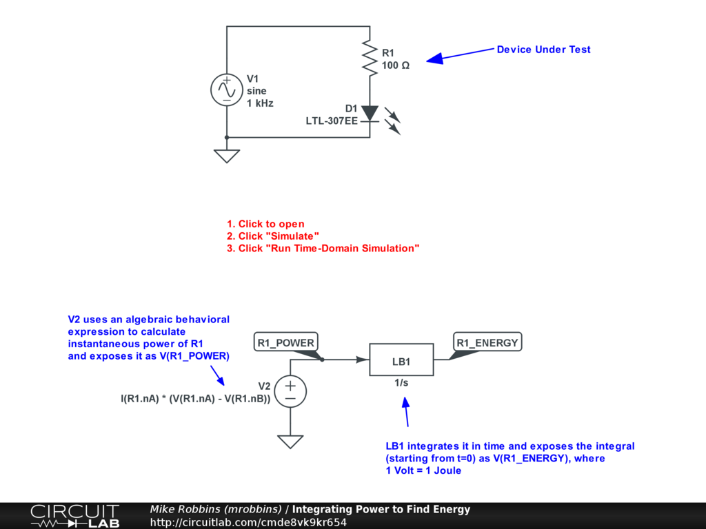 Measure the power and total energy dissipation of a circuit element.