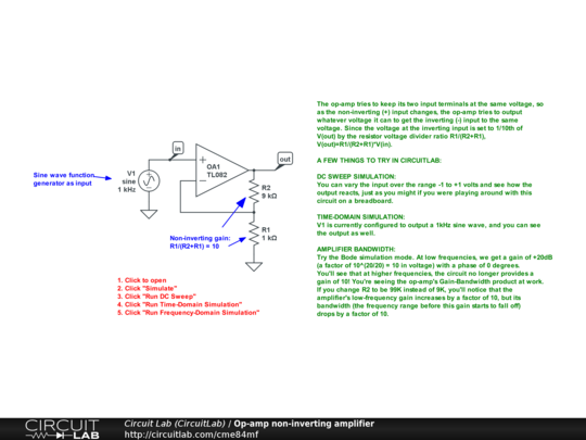 You can vary the input over the range -1 to +1 volts and see how the output reacts, just as you might if you were playing around with this circuit on a breadboard.