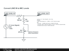Convert line level signal to mic input signal level.
