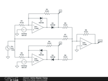 This circuit limits its output swing to a pair of thresholds by using two precision rectifiers to cancel out input swings that are too large.