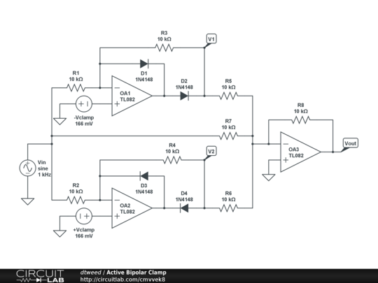 An active clamp circuit that passes its input unmodified (but inverted) if it is within the clamping thresholds.