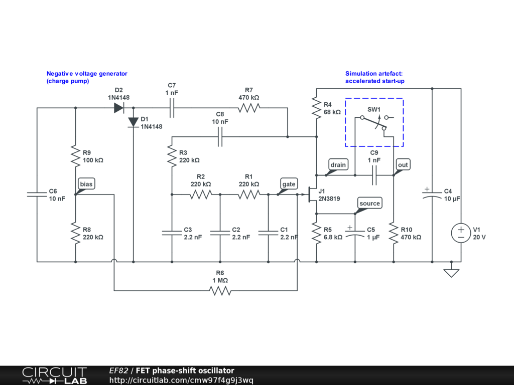 A first attempt at putting FET gain control in an RC phase shift oscillator.
