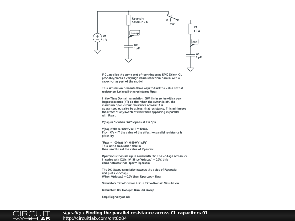 Rparcalc is then set up in series with C2. The voltage across R2 in series with C2 is 1V. Since V(dccap) = 0.5V, this demonstrates that Rpar = Rparcalc.