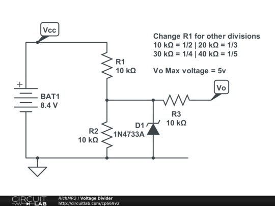 Simple voltage divider circuit with over-voltage (5V) protection.