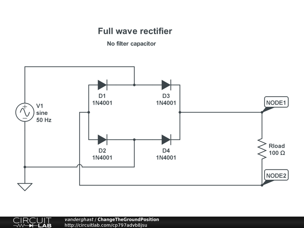 -- change the position of the ground. If you grounded "Node2", since all the grounds are connected, you will bypass diode D2, changing the full bridge rectifier for something "else".