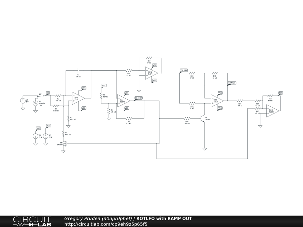 This is the simulation for my ROTLFO a voltage controlled LFO for Eurorack.