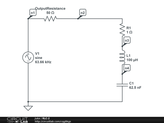 This is the same RLC circuit at its resonant frequence, but taking into account of the output impedance of the function generator.