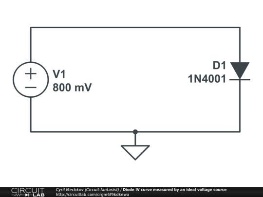 Eliminating the resistor R1 (ideal voltage source). We can reduce its resistance to zero (or 1 ohm) and carefully begin to increase the input voltage, making sure that the current does not exceed the maximum allowable. This is how we determine the maximum voltage of the DC sweep and set it in the parameters. In this way, we will explore the diode by an "ideal" voltage source without any error.