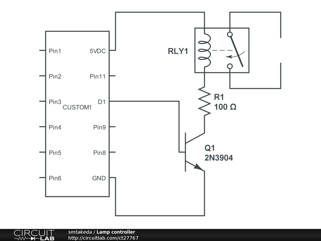 This is the first time to draw a circuit diagram. I want to control a lamp that turns on when a signal is sent.