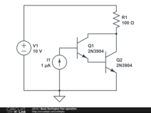 Load this project and press F5 to see the collector current increase very quickly as the base current is increased very slowly.