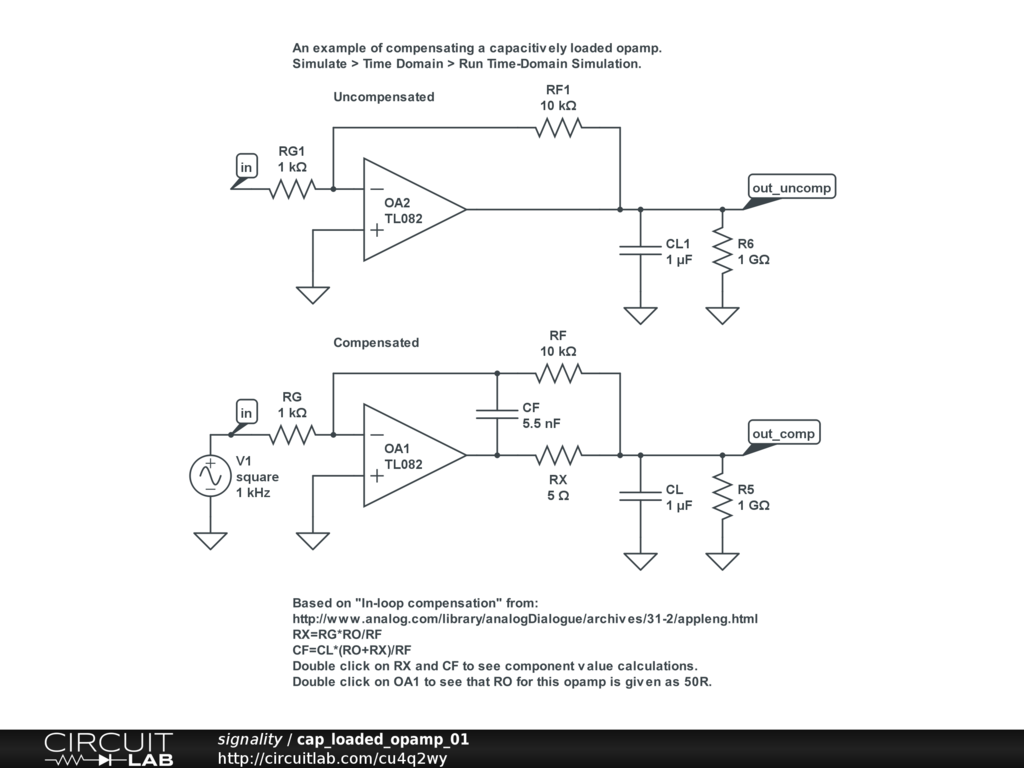 An simple example of compensating a capacitively loaded opamp.