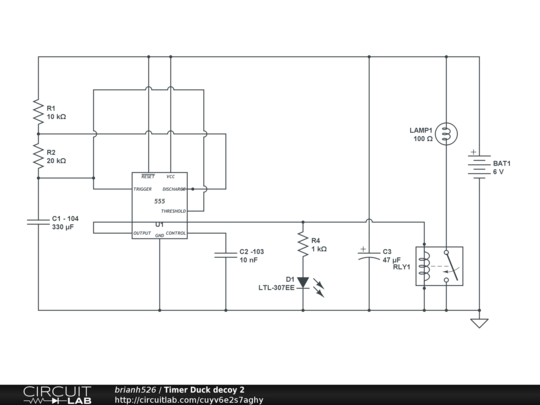 Trying to build a simple astable timer for a motorized Duck Decoy. The lamp in the circuit is actually a small DC motor. Circuit design by Rod Elliott.