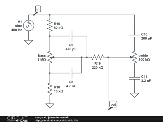 The James or "Baxandall" (as some call it) passive EQ circuit snippet.
