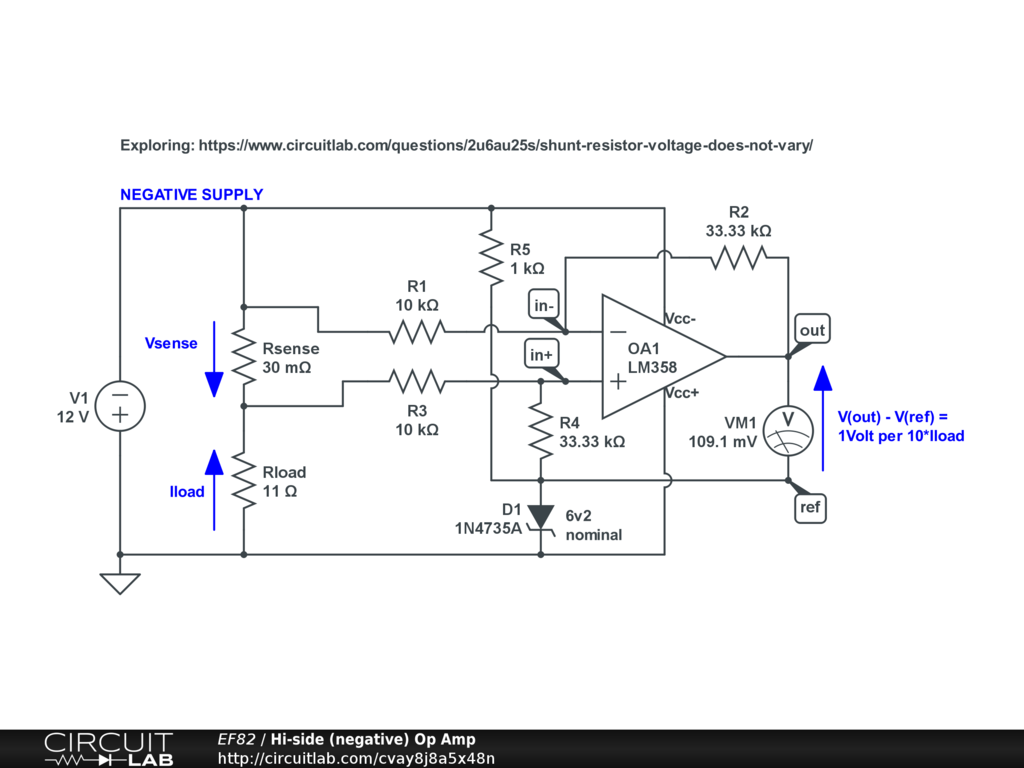 Using an Op Amp to access the voltage across a current sensing resistor, when the power supply is negative.