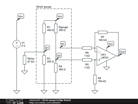 Don't use this circuit for instrumentation, there is no signal conditioning for the gauge bridge and no temperature compensation.