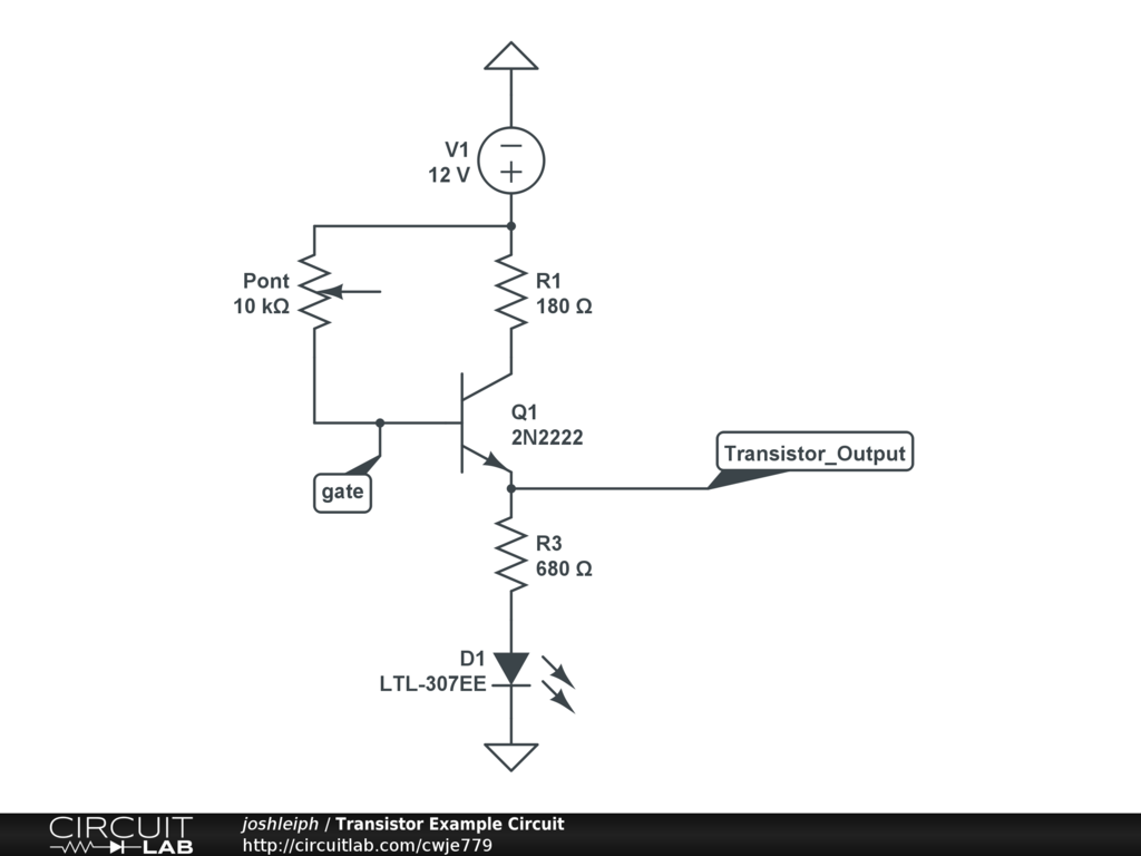 Shows how the voltage and current at the base and the emitter change as the resistance (Pont) is changed.