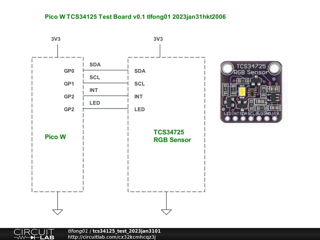 TCS34125 RBG Sensor Test Board