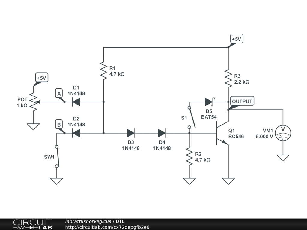 NAND-gate. Diode-Transistor-Logic implementation.