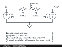 Solve a circuit with opposing voltage sources.