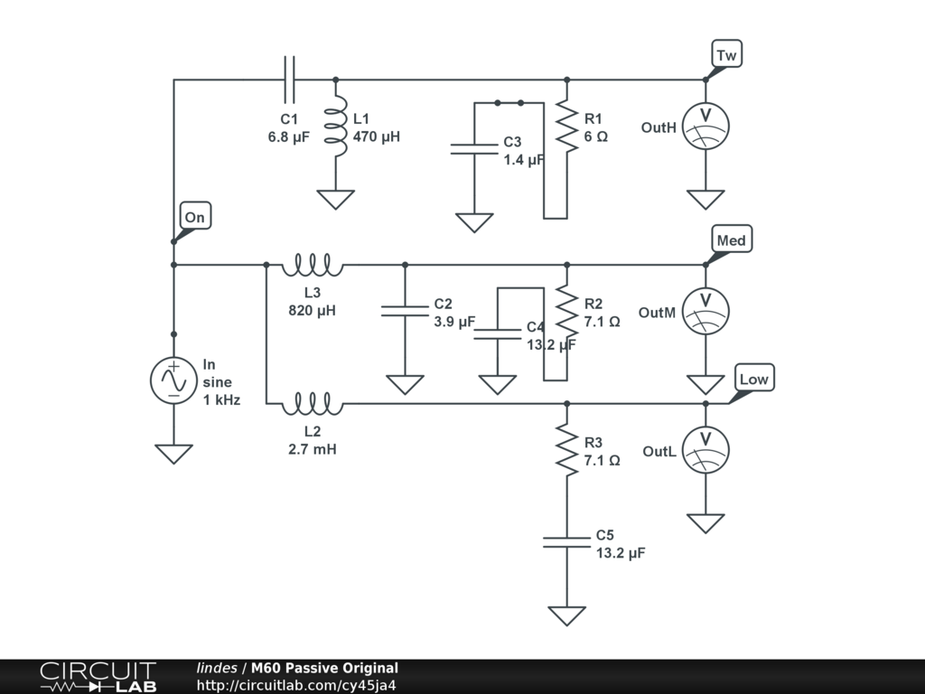 Passive crossover for M60 Meridian mk1 The original active circuit was destroyed and I try to make a usable loudspeaker.