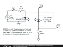 A CCCS (Current Controlled Current Source) can be used to simulate the optical coupling between an LED and photodiode.