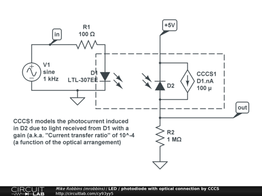 A CCCS in parallel with a photodiode can be used to simulate the connection between an optical transmitter and optical receiver.