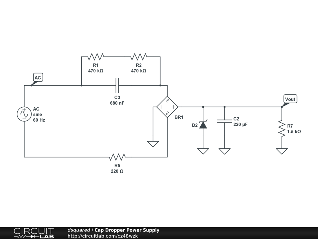 A simple Capacitor dropper power supply. 24V output.