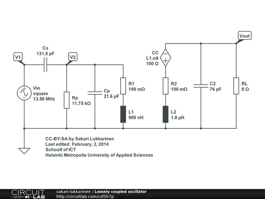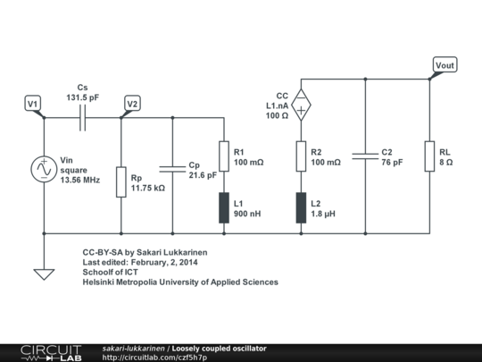 Loosely air coupled wireless power transmission. The coupling coefficient is modeled as current controlled voltage source.