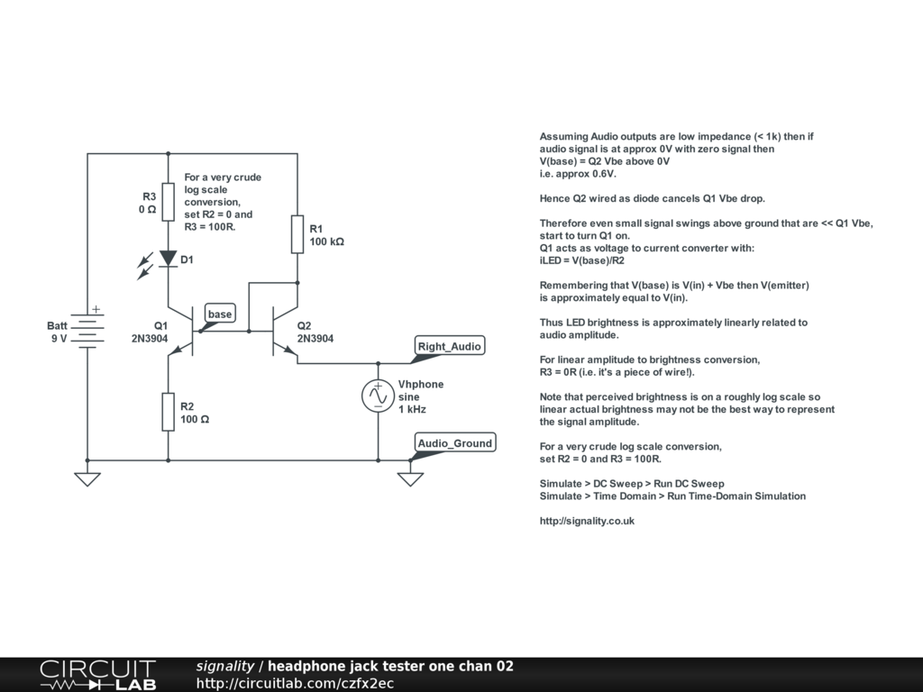 Thus LED brightness is approximately linearly related to audio amplitude.