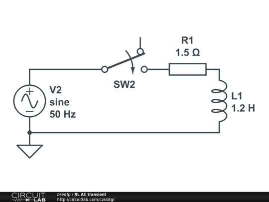 Use this circuit to test the response of a simple RL circuit when an AC source is applied. Vary the time that the switch closes to observe the different outcomes.