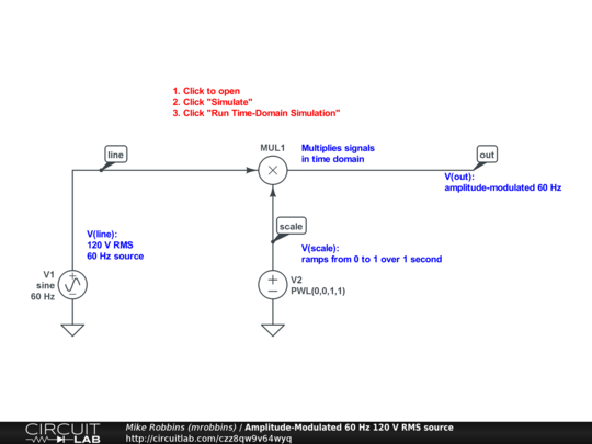 Multiplies a 60 Hz source by a piecewise-linear ramp to simulate an adjustable voltage source ramping up.