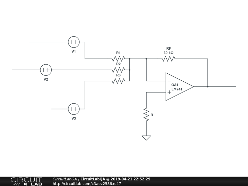 Given , V0= - (3V1+V2+0.2V3) V0 is the terminal at the right most end in the circuit. Estimate R1, R2, R3 and approximate value of R. Got R1, R2, R3. But how to approximate R ? |