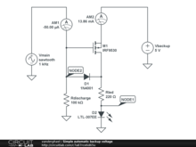 Simple automatic backup voltage PUBLICProvide a backup, Vbackup, when the main source, Vmain, fails to supply the required voltage. The switching is automatic and revert to Vmain, also automatically, when Vmain "comes back". The two... by vanderghast | updated May 24, 2021 |