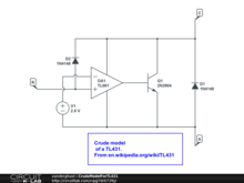 CrudeModelForTL431 PUBLICSimulation of a TL431, adapted from Wikipedia.org. by vanderghast | updated October 20, 2021 |
